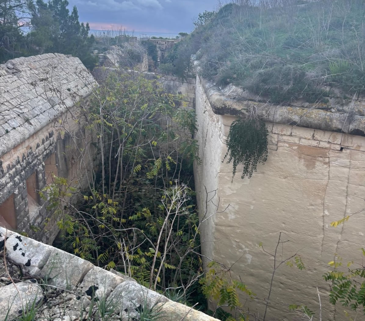 The idea behind the Victoria Lines was to use the natural escarpment of the ridge plus purpose-built forts to block the north of the island and defend against invasion or seaborne threats. Fort Madalena occupies the eastern extremity of that line, giving it both land-defence and coastal-defence roles.