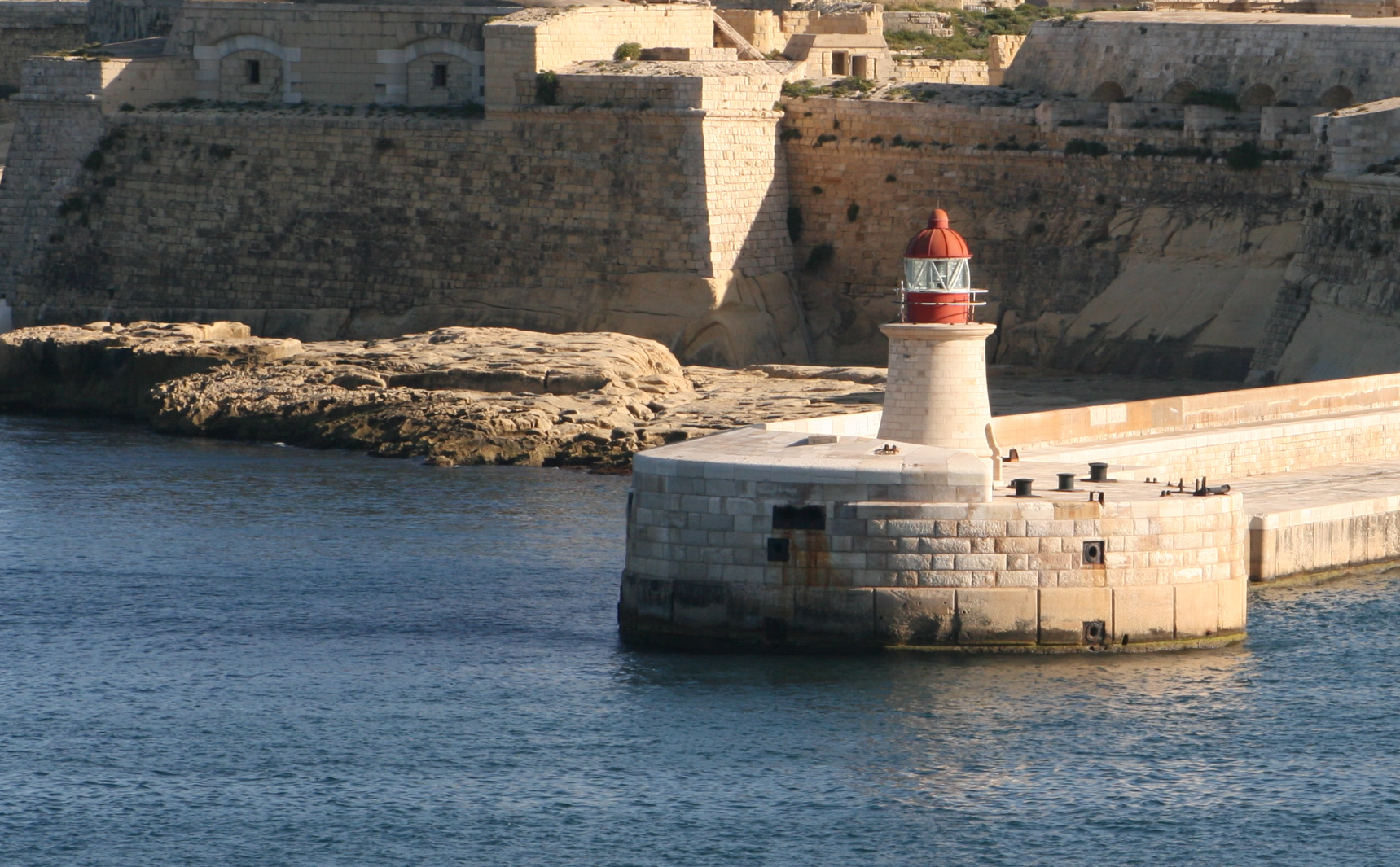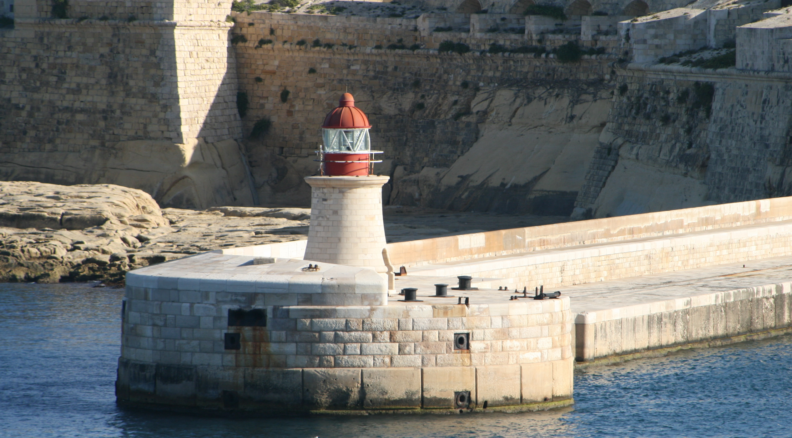 Optical equipment: specialist lighthouse listings and lighthouse directories list a 4th-order lens for the Ricasoli breakwater light (appropriate for a harbour entrance light), with a red characteristic used to mark the breakwater arm. The light is a harbour/entrance mark rather than a long-range coastal beacon.