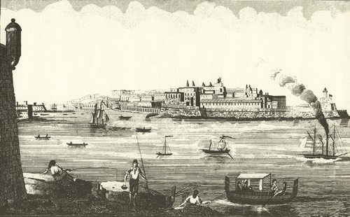 An engraving dated 1834 shows a “Windmill Fort Ricasoli” in the distance, as seen from the harbour area.
