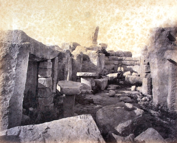 Construction of the main temple building is dated to roughly the middle-late 4th millennium BCE (commonly given as c. 3600–3200 BCE), although parts of the complex include earlier material. The site was first formally explored in the 19th century and has been excavated and studied in successive campaigns during the 1800s and 1900s. Important finds — pottery, tools, and small cult statuettes — were removed to museums and are exhibited as key evidence of ritual life on the islands.