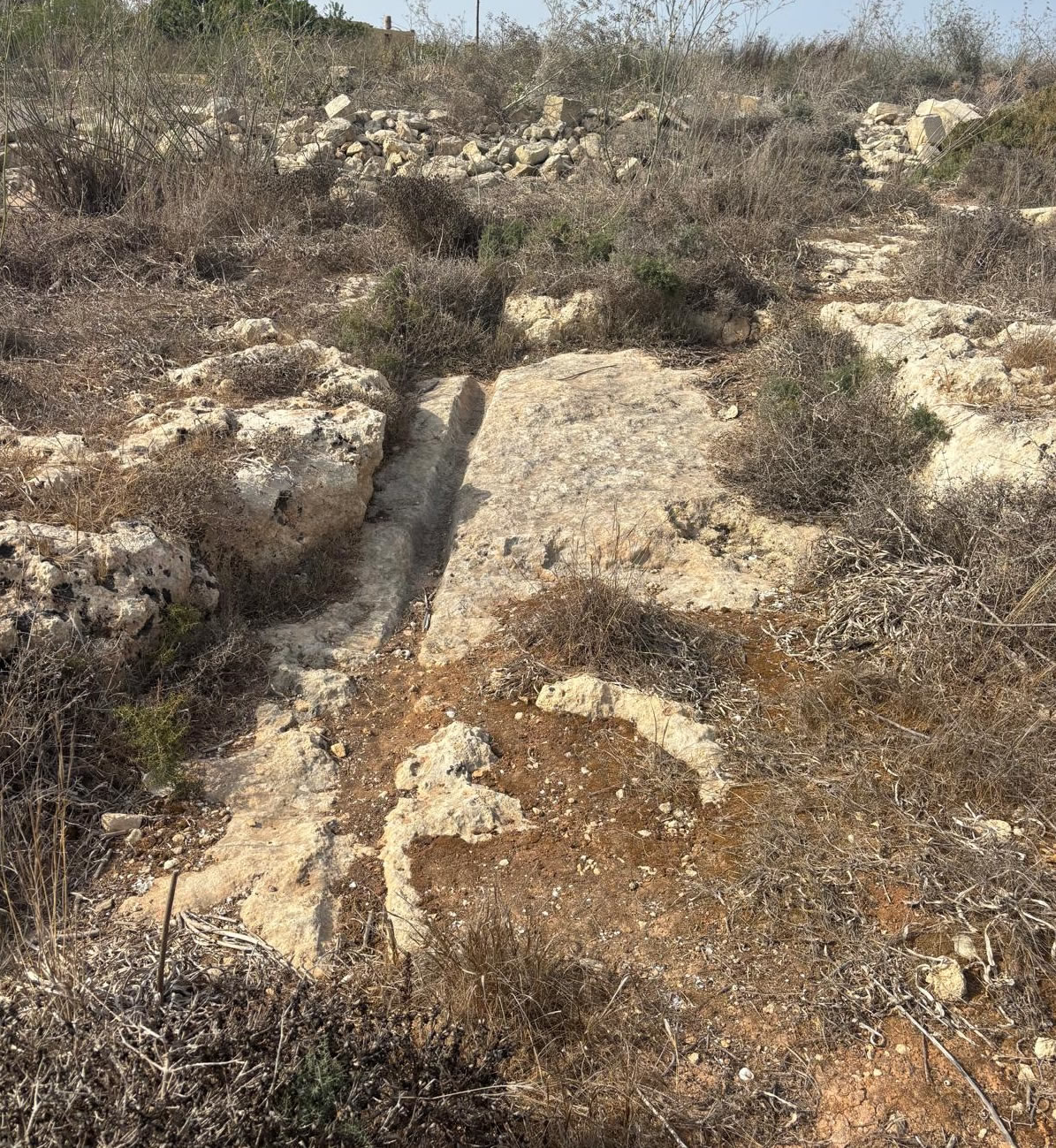 The cart ruts of Sannat (Ta’ Ċenċ plateau) are Bronze Age to Classical-period trackways cut into the limestone. Found near dolmens, menhirs, and burial sites, they reinforce the idea that Ta’ Ċenċ was a key prehistoric and later ritual/settlement area. Their exact function remains uncertain, but they are part of Malta and Gozo’s wider cart rut network, one of the most enigmatic features of the islands’ archaeology.